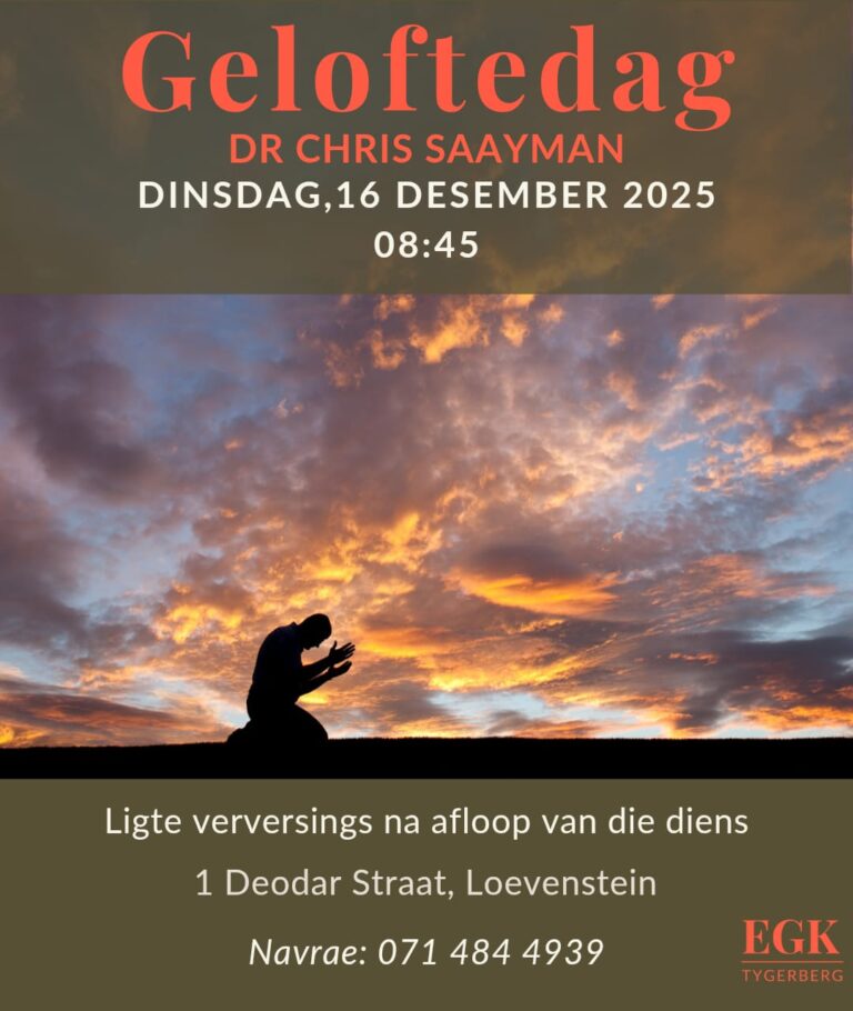 Die Evangelies-Gereformeerde Kerk van Suid-Afrika is 'n lewenskragtige evangeliese kerk wat op 'n Gereformeerde grondslag berus. EGKSA Tygerberg is 'n familie vriendelike gemeente geleƫ in Loevenstein, Kaapstad.
